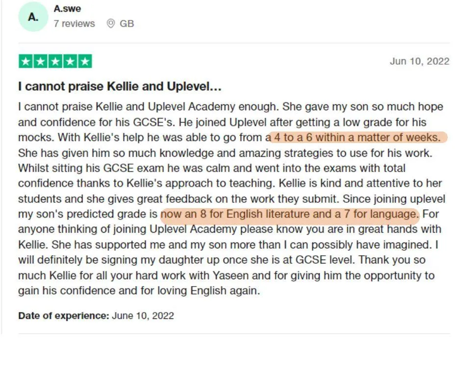 Using our decade of teaching experience in the UK and abroad, we have carefully developed a study programme that, not only allows your child to achieve their desired grades in English, but to also feel confident and good about themselves, allowing them to utilise what they have learnt in their exams and beyond.